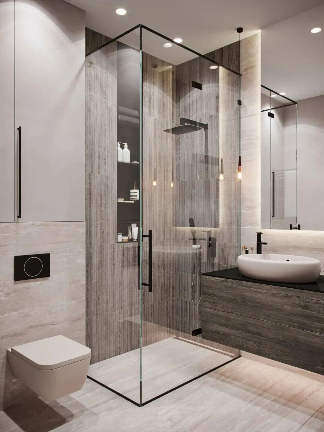 暗衛(wèi)的燈光設(shè)計(jì)最好能在洗手臺(tái)、馬桶區(qū)、洗浴區(qū)各一個(gè)光源,讓燈光解決暗衛(wèi)光線問(wèn)題。