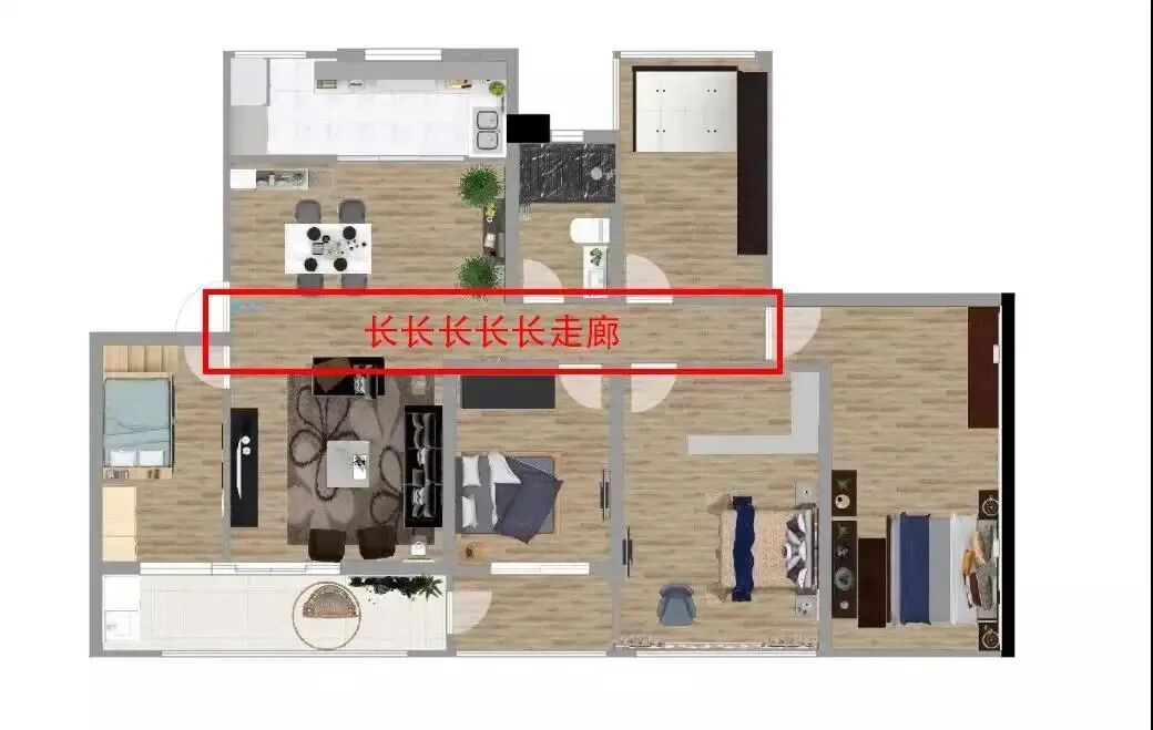長(zhǎng)走廊也是常見(jiàn)的雞肋戶型,很多小伙伴都不知道拿它如何是好:
