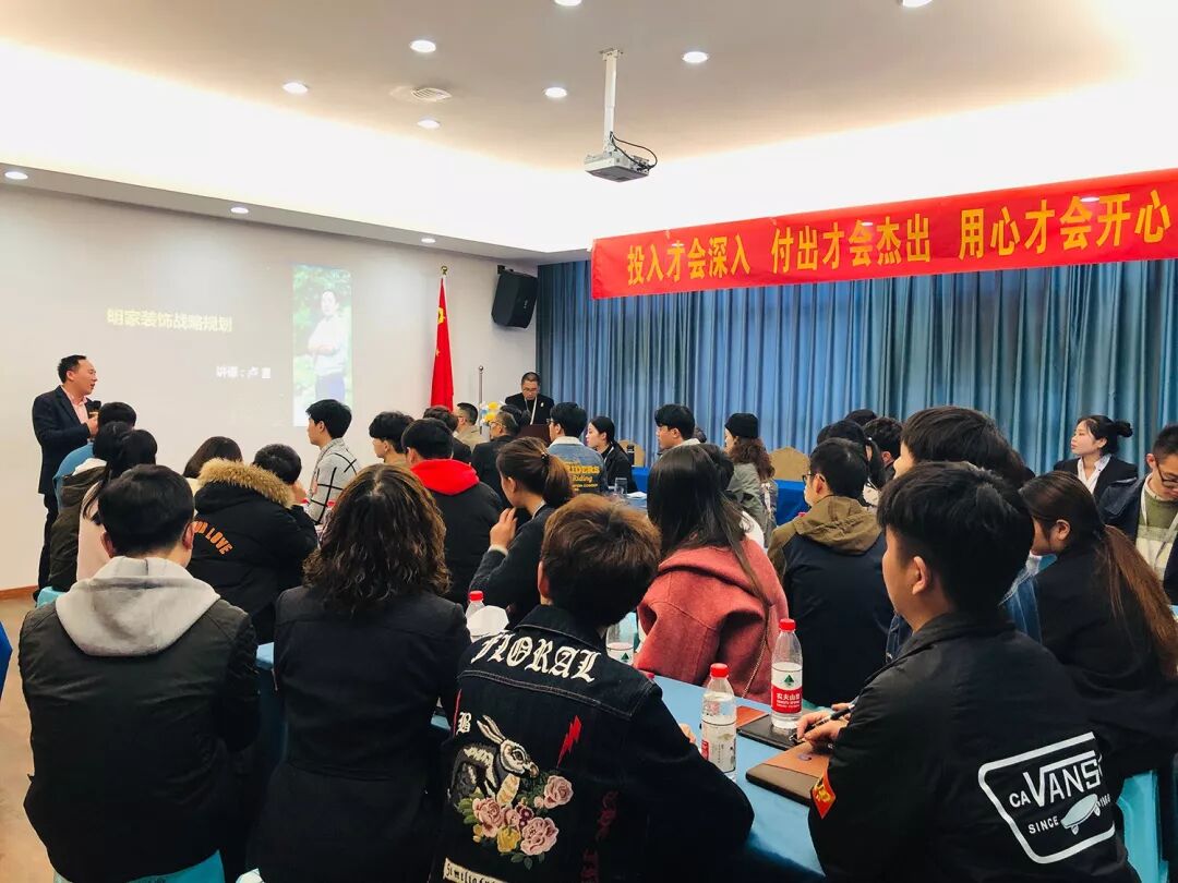 “ 明家裝飾董事長(zhǎng)盧森軍先生在講話中,對(duì)新伙伴的加入表示祝賀和歡迎。并對(duì)公司的戰(zhàn)略布局、今后的發(fā)展以及大家的職業(yè)規(guī)劃給了一個(gè)清晰的方向與指導(dǎo)。