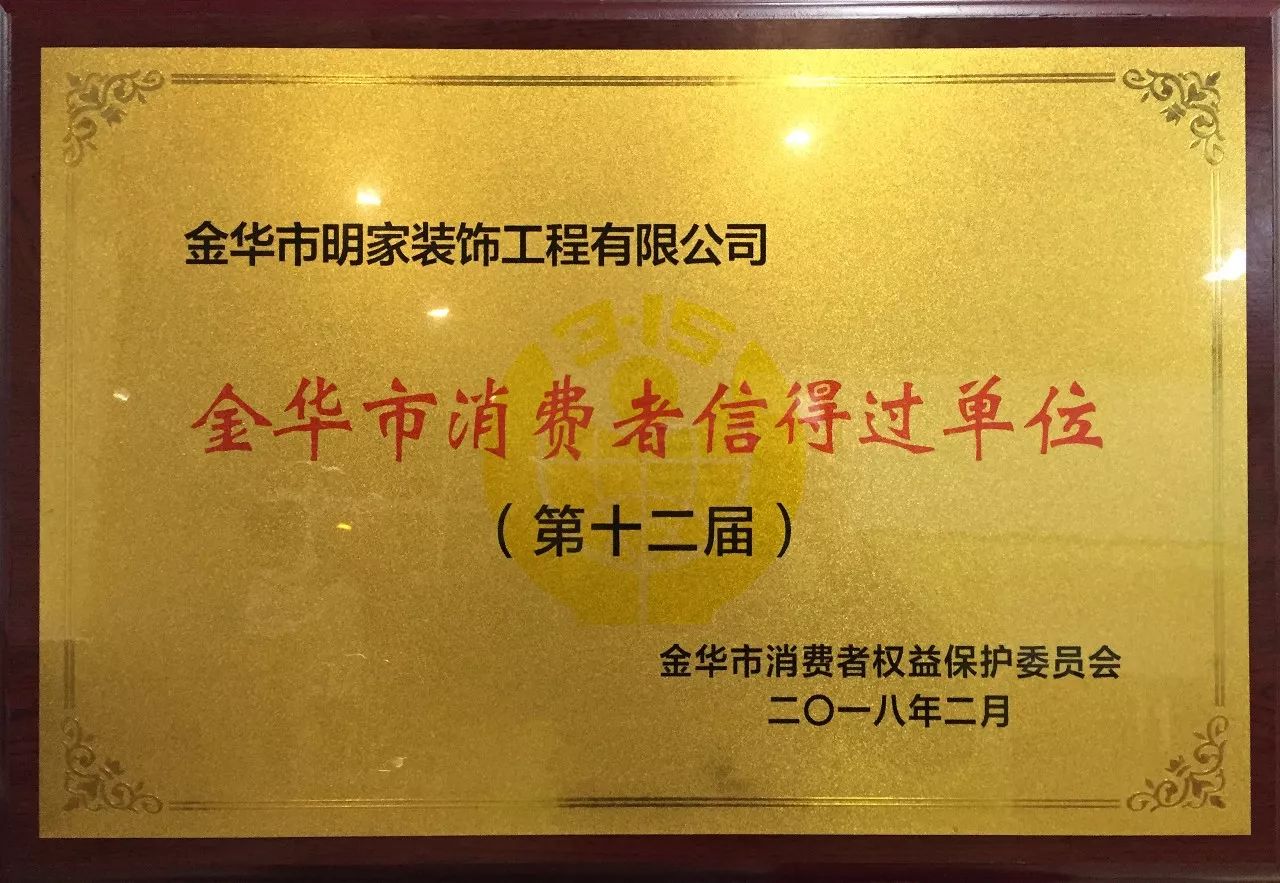 放心消費在金華 放心家裝有明家 賀明家裝飾連續(xù)4屆8年獲得“金華市消費者信得過單位”