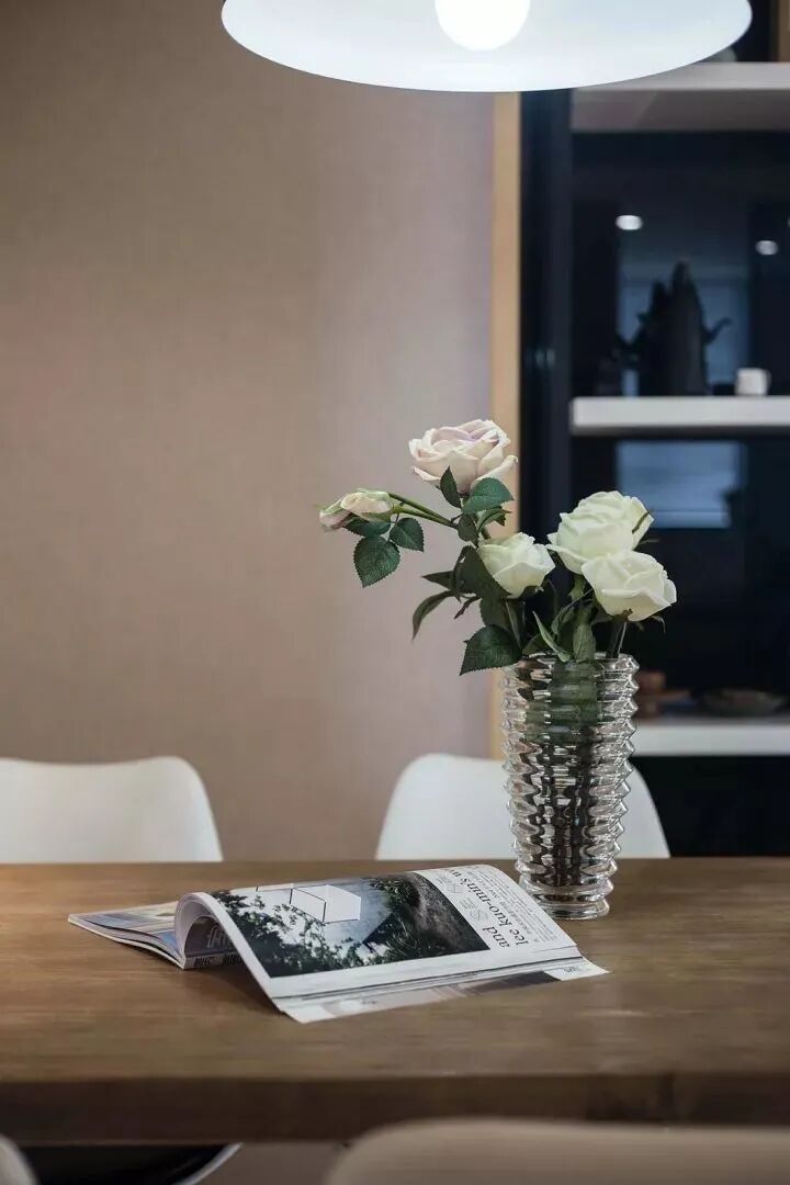 舒服的布藝沙發(fā)與簡約大方的沙發(fā)墻,搭配一張圓形黑色小茶幾,在加一張小木樁,顯得自然簡約而又端莊大方;