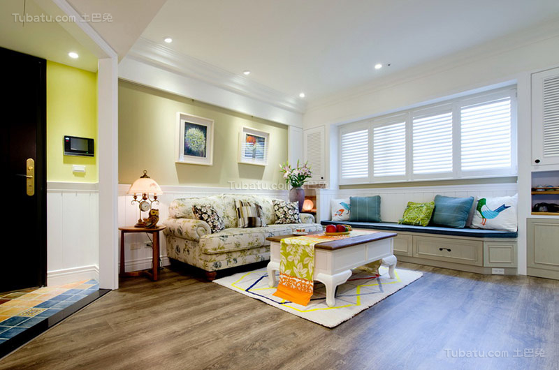 像圖中就很好的利用其客廳的空間,它打破了以往的設(shè)計(jì),用簡單的木板將墻面分割開來,讓它有了強(qiáng)大的儲(chǔ)存空間,本應(yīng)放電視的地方卻放了沙發(fā),但一點(diǎn)也不和諧,而且使得整體看起來很時(shí)尚,現(xiàn)代。整體的色彩的運(yùn)用給人了一種溫馨十足的感受。