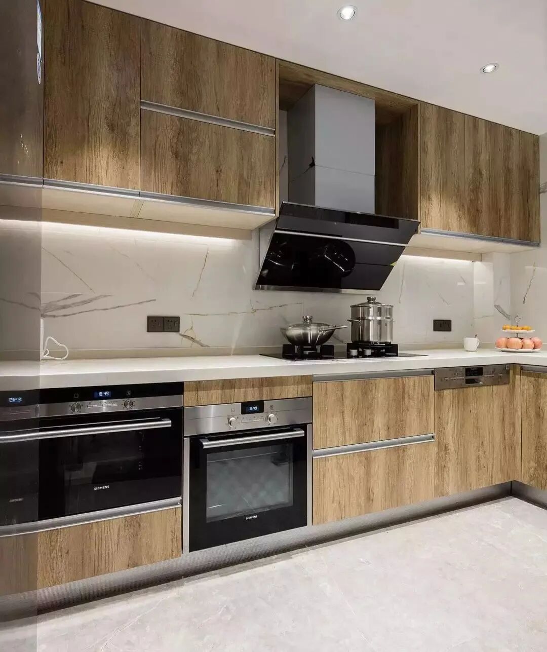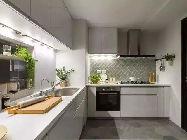 廚房臺面前后都要設(shè)置擋水條,可以防水灶臺上的水沿著櫥柜流到地面,一來保持了地面的干爽,二來也可以避免水流入到地柜內(nèi)部,引起板材的發(fā)霉、腐爛。