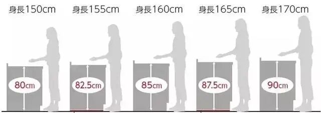 櫥柜臺面高度的設(shè)定不能“人性”,一定要根據(jù)經(jīng)常下廚房的人的身高來定制打造,參考公式:身高/2+5~10(cm)。