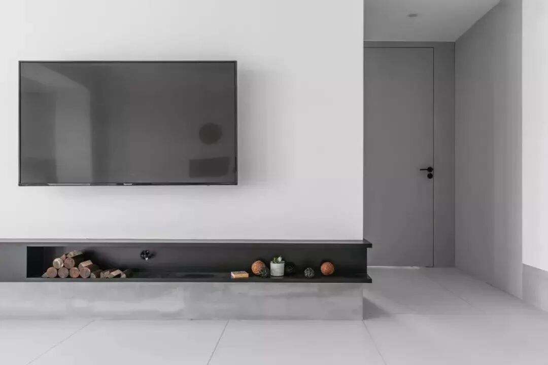 電視墻更為簡(jiǎn)單明了,在這個(gè)簡(jiǎn)潔大氣的空間基調(diào)下,將黑白灰三色演繹的更是淋漓盡致?;疑卮u,并且延伸灰色到墻下20公分,以起到過(guò)度作用,在灰與白色中間穿插黑色現(xiàn)代壁爐作為裝飾,不管是色塊關(guān)系,還是層次感都一一做了表達(dá)。
