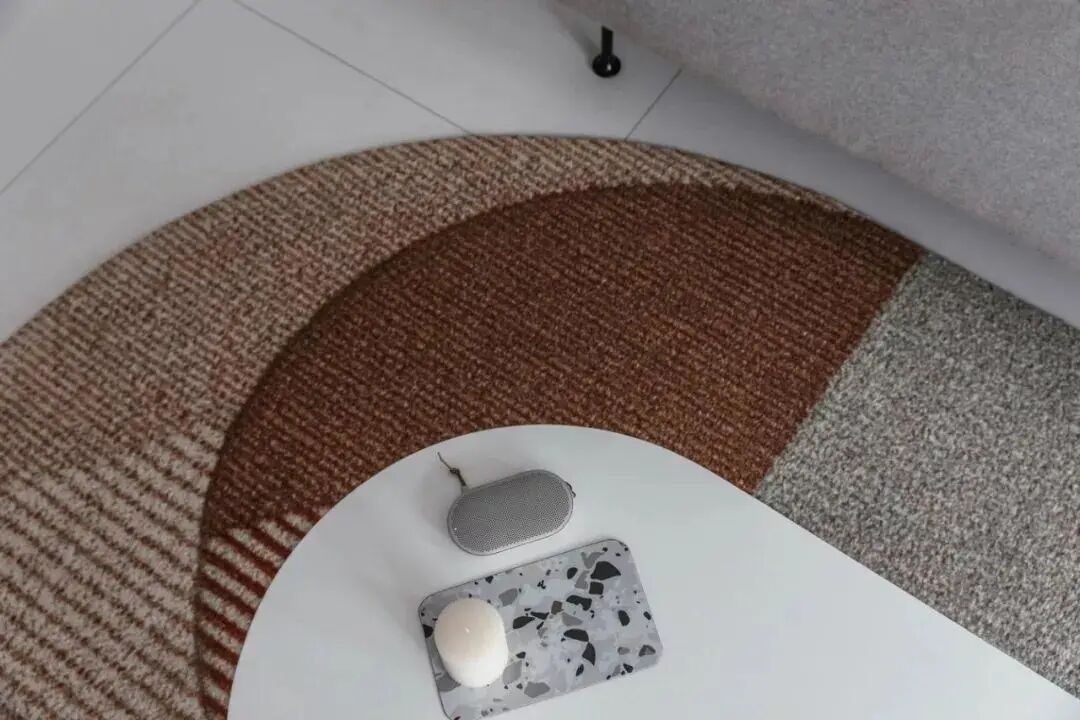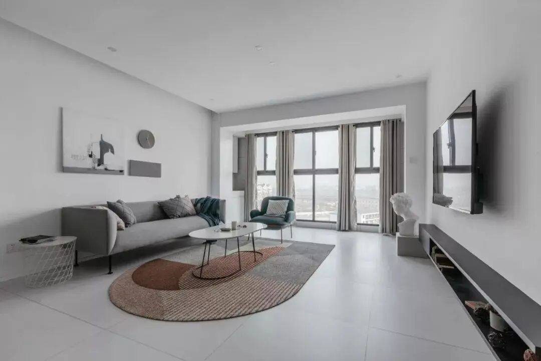 暖灰色的沙發(fā),安靜站立在漸變的幾何形狀同色系地毯上。 空間中的靜謐感被無(wú)聲喚醒,所謂含蓄,不過(guò)如此。這個(gè)家基本以高級(jí)灰為主調(diào),所有的物件似乎都被蒙上了灰灰的調(diào)子,卻因著大大的落地窗有著充足的采光,而煥發(fā)生機(jī),即便全灰,也不顯得過(guò)分冷淡。