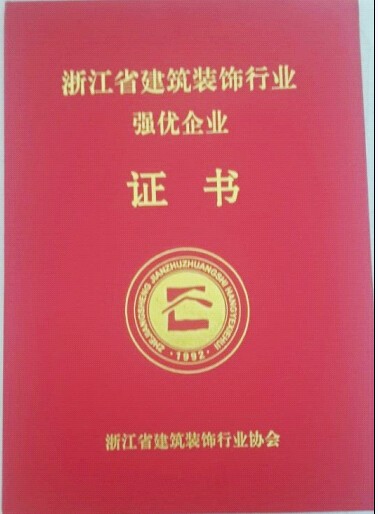 根據(jù)浙江省建筑裝飾行業(yè)協(xié)會《關(guān)于2013年度浙江省建筑裝飾行業(yè)強優(yōu)企業(yè)評價推介活動的通知》(浙裝協(xié)[2014]12號文件),省建筑裝飾行業(yè)協(xié)會組織專家開展了省建筑裝飾行業(yè)強優(yōu)企業(yè)評價活動。評價范圍包括公共建筑裝飾類、建筑幕墻類、住宅裝飾類及裝飾材料類(含市場)、建筑加固類、建筑節(jié)能及智能化企業(yè)。省建筑裝飾行業(yè)協(xié)會對參評企業(yè)提供的數(shù)據(jù)和相關(guān)材料進(jìn)行細(xì)致、認(rèn)真的審查、審核,按評價標(biāo)準(zhǔn)進(jìn)行嚴(yán)密的統(tǒng)計、核算,并頒發(fā)浙江省建筑裝飾行業(yè)強優(yōu)企業(yè)